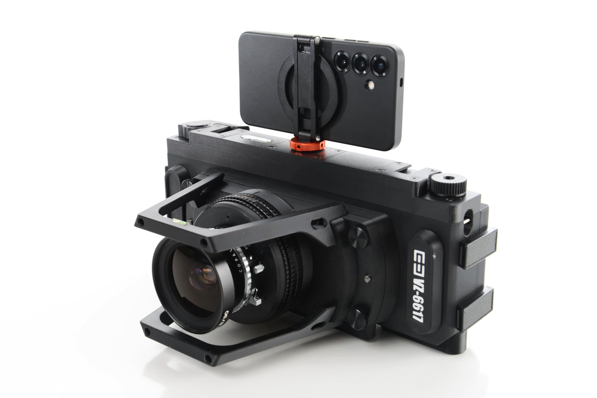 The VZ-6617 uses widely available large format lenses on interchangeable lens cones with an integrated dark slide to allow you to switch lenses and focal lengths mid-roll.